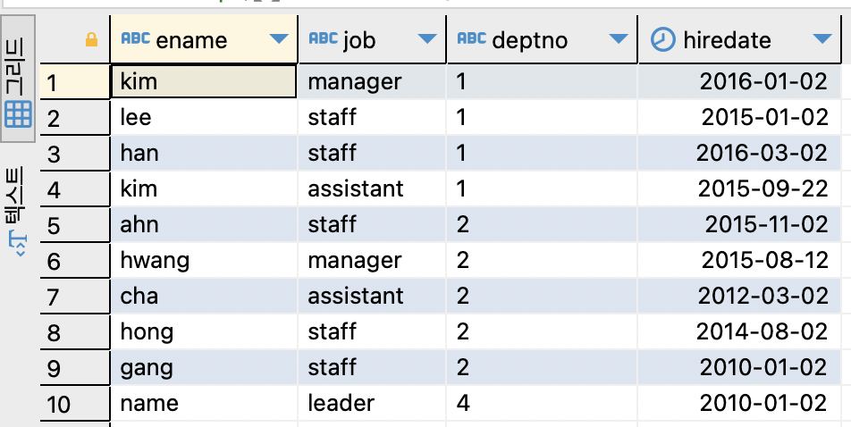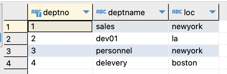 ,deptno varchar(10)